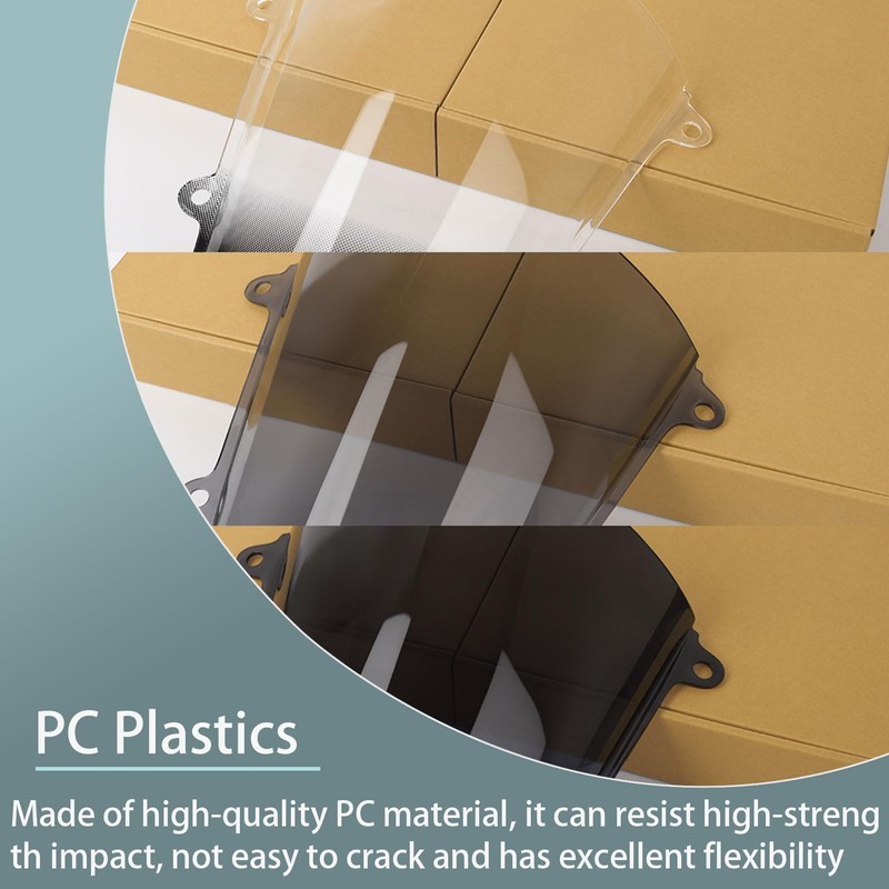 - Material: Made of high quality PC material, can withstand strong impact, not easy to crack, good flexibility. The windshield of this material has excellent detail and excellent workmanship, not easy to fade and deform.