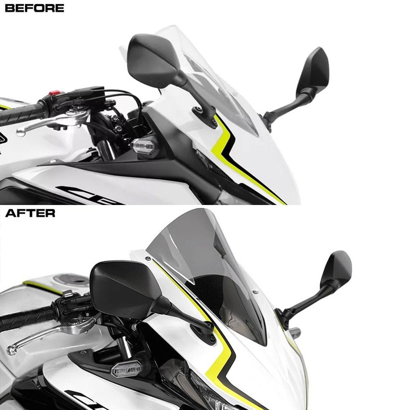- [ Package List ] --- 1 x Racing Windscreen for CBR500R with mounting hardware.️ [6 Color Options]--- Gradient Light Smoke / Gradient Smoke / Gradient Clear / Gradient Light Smoke - Small Black Dots / Gradient Clear - Small Black Dots and 6 Colors to Decorate your bike cover and make you stand out