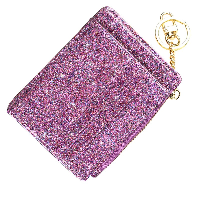 woogwin Slim RFID Credit Card Holder for Women Mini Front Pocket Wallet Purse With Keychain, Glitter Purple, small, Compact