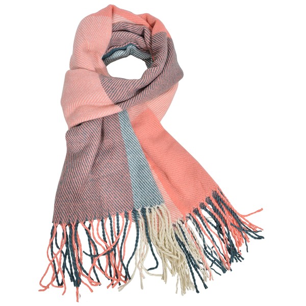 woogwin Winter Warm Plaid Scarfs for Women Long Blanket Scarf Big Grid Shawl Wrap (PinkGreen)