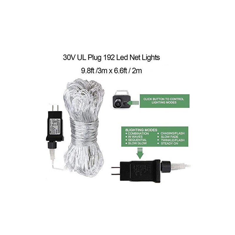 - Christmas Net Lights: Woohaha’s decorative net lights is with 192 LEDs and size of 9.8ft x 6.6ft! Come with a cool white mesh lights with 29V UL Safe Plug powered,lower than standard safe voltage 36V to ensure your safety.Perfect for Christmas outdoor decoration!