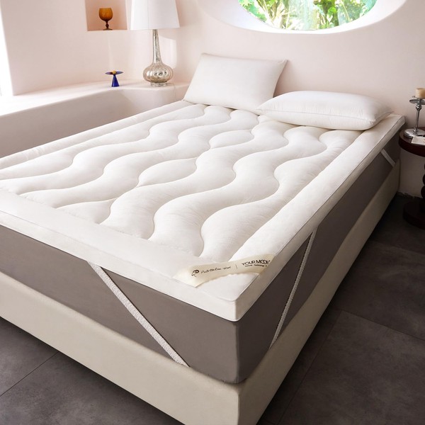 - 【Fluffy and not easy to compact】High-quality wool has excellent elasticity and fluffiness, and will not compact easily even after long-term use. The natural elasticity of wool fibers ensures that the mattress topper maintains a thick structure during use, providing continuous support for the body and avoiding excessive sinking. In addition, the fluffy design also increases the comfort of the mattress topper, helping you get better sleep quality.