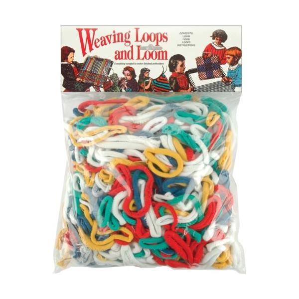 Wool Novelty-Weaving Loops And Loom. Everything you need to make finished potholders! This package contains one 7-1/4x7-1/4 inch plastic weaving loom, one hook, 16 ounces of multi colored loops, and instructions. Made in USA.