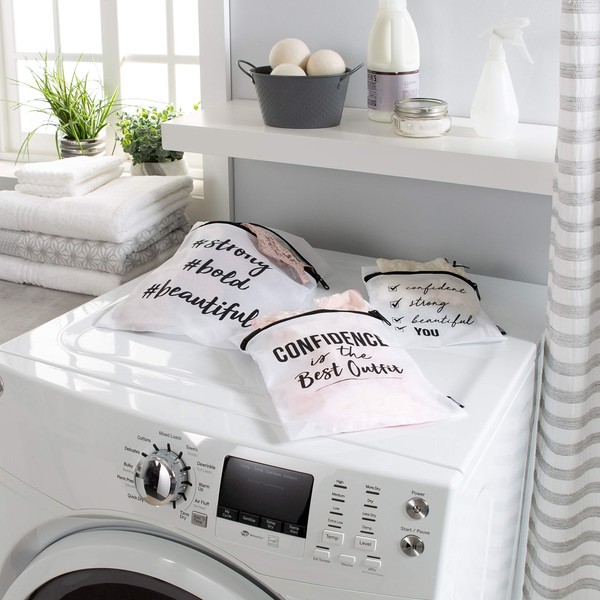 Laundry 360 3 Piece Printed Mesh Wash Bags, Multi Size Laundry Bag for Delicates, Zipper Close