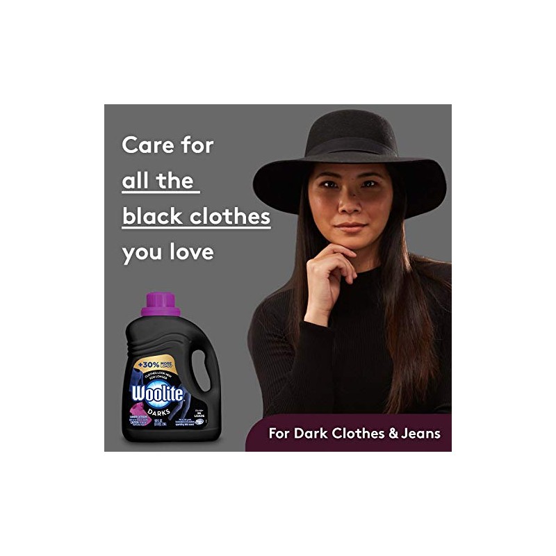Use Woolite Darks laundry detergent so the love for your dark clothes doesn't have to fade! We all love the way dark clothes make us feel and no one wants that feeling to fade. However, no matter how carefully you wash your favorite jeans or little black dress, they can fade, change color, or bleed in the wash cycle making them less enjoyable to wear.Woolite Darks has the perfect balance of clean and care, keeping the darks you love vibrant even after 30 washes! Woolite Darks formula contains an active ingredient that acts as a dye magnet that collects loose dye particles during the wash cycle, preventing color transfer & fading so dark colors stay dark for longer! Woolite Darks formula, now enhanced with Color Renew brings the color back to your beloved dark clothes as it smooths rough fibers, removes pilling and revives colors.