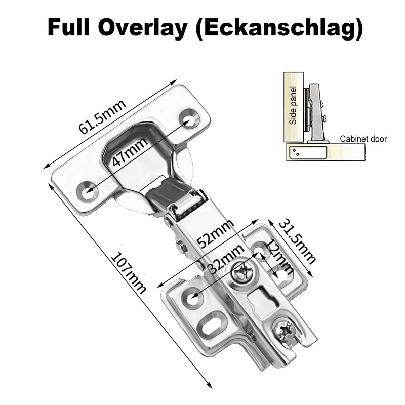 - Universal use: the pot hinge with a pot diameter of 35 mm and a drilling distance of 47 mm is a universally used standard size and fits most standard furniture.