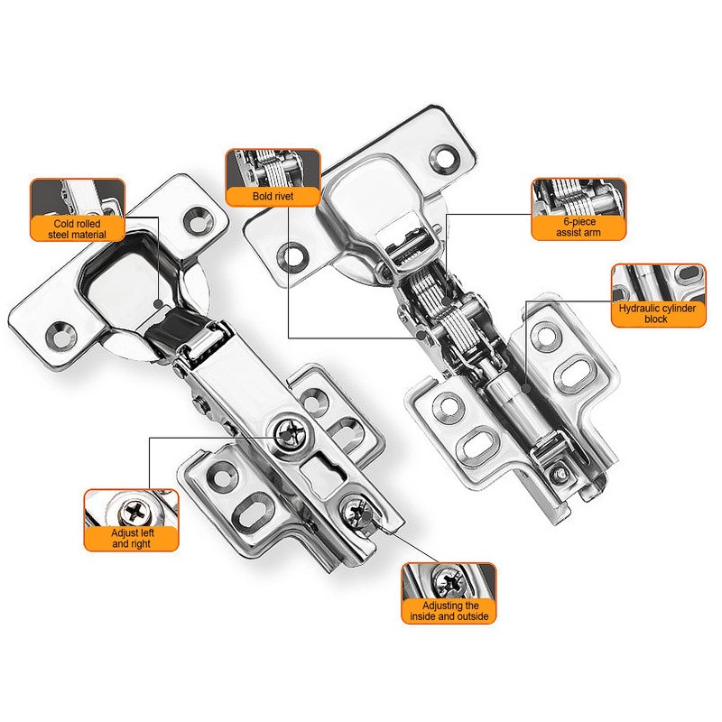 - Easy installation: use a practical screw to install the hinge with the housing to adjust the depth to the desired angle. Press the back of the hinge. You can easily clamp and remove the furniture door. If you find that the hinges are loose or the door panels are not flat during use, you should use tools to tighten or adjust them immediately.