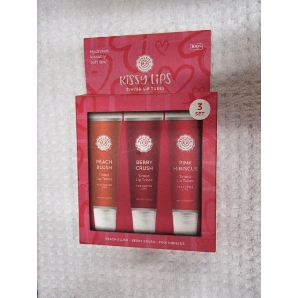 The Woolzies Kissy Lips Tinted Lip Tubes come in a set of three, offering natural hydration with a touch of color. Each tube is enriched with cocoa butter, beeswax, and vitamin E, helping to moisturize and soothe chapped lips while sealing in hydration.