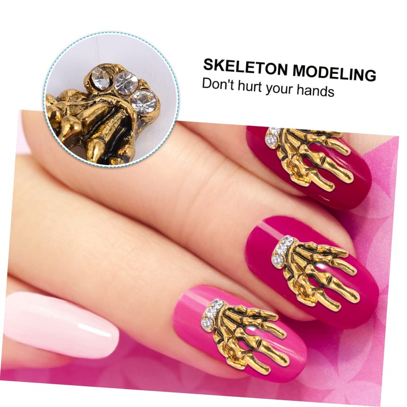 Alloy Skeleton Hand Nail Art Easy to apply on natural or artificial nails,cell phone decorations, scrapbook, etc.Alloy Skeleton Nail Decor You can make the manicure with your friends together, you will have a lot of fun with these decals.Drills Nail Decal These skeleton hand nail art decals are suitable to use above nail polish, UV with nail tool.Alloy Manicure Decoration They are made of alloy material, durable and sturdy for long time to use
