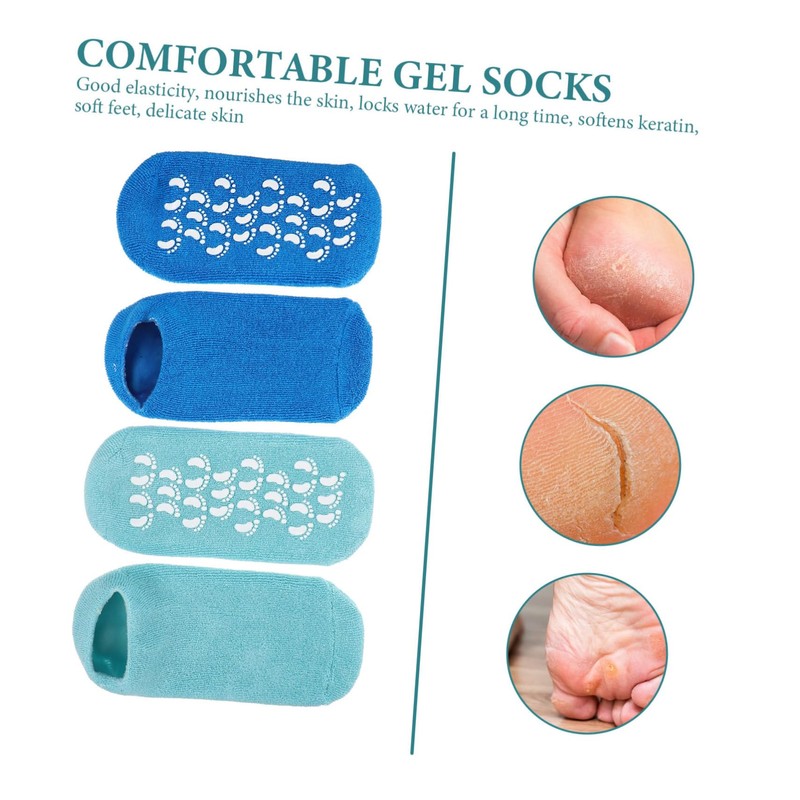 silicone socks Continuously help moisturize the skin and restore its and healthy appearance, nourish smoothness and increase flexibility.cracked heel socks This spa gel socks are the solution for your feet care.heel softening socks Safe for use.foot masks The gel socks are smooth and moisturizing skin without bad effects