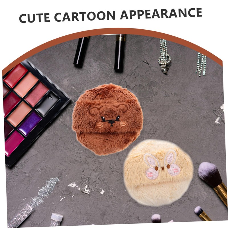 WOONEKY 2pcs Cute Cartoon Long Plush Powder Puff Soft Makeup Cushion Applicator for Sensitive Skin Friendly Fluffy Design for Powder and Foundation Application