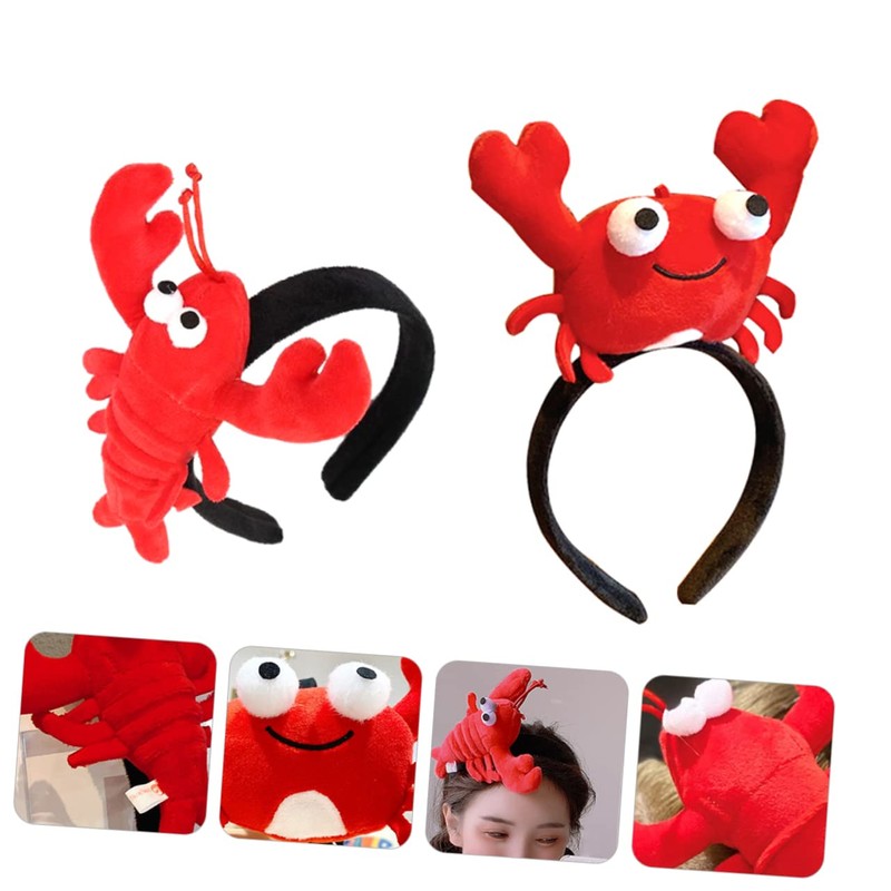 WOONEKY 2pcs Cute Lobster Crab Headbands Cartoon Hair Accessories for Parties Cosplay Lightweight Cloth Headwears for Fun Photo Props for Festivals and Celebrations