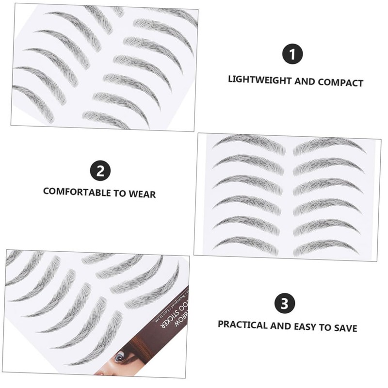 WOONEKY 3 Sheets Waterproof Eyebrow Temporary Brow Stickers Realistic Eyebrow Lash