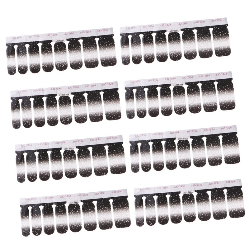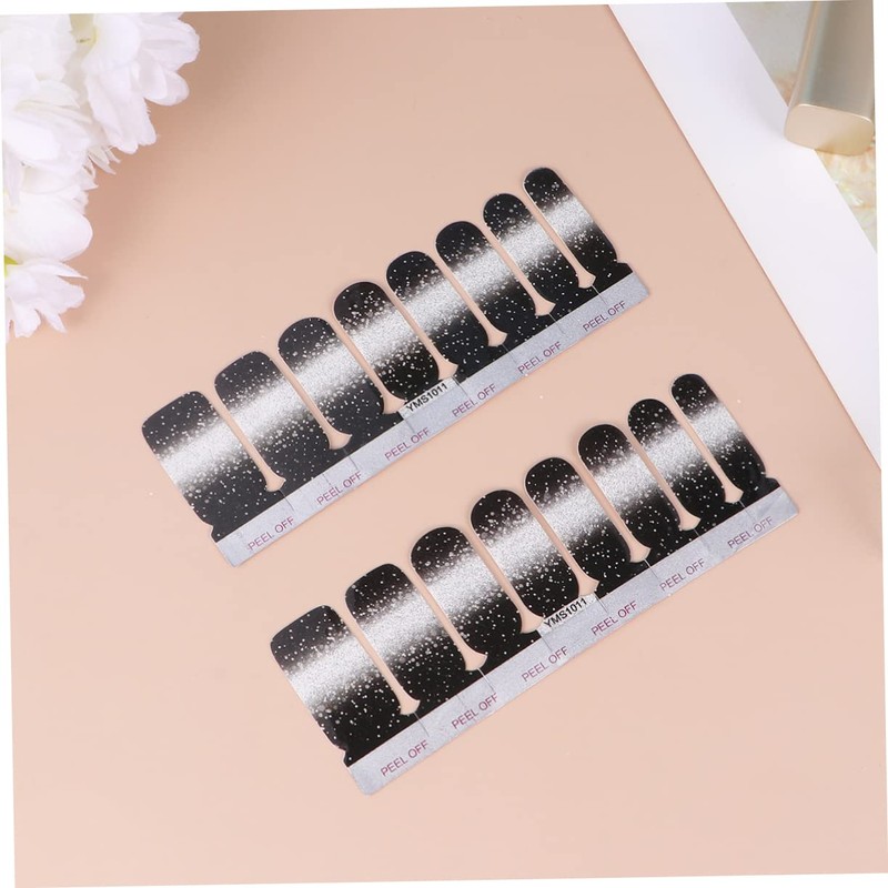 WOONEKY 48pcs Gradual Shade Nail Stickers Full Cover False Nails Glitter Design Black Gradient for Parties Safe Material for Creative