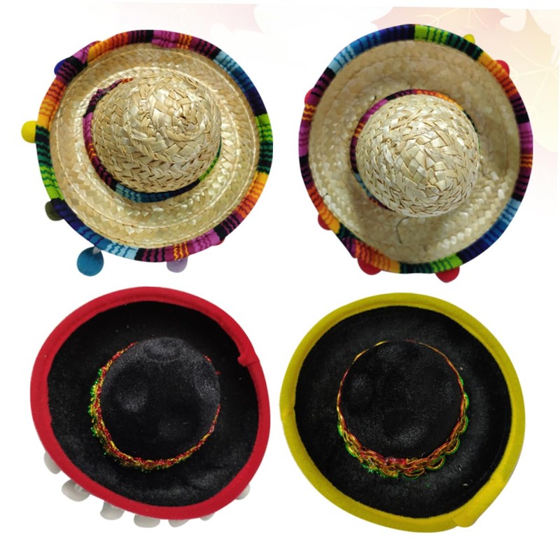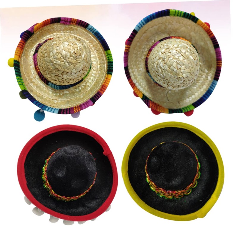 WOONEKY 4pcs Mexican Sombrero Headband Mini Hat Hair Hoop Party Decorations for Festival Boys and Girls Adults Fiesta Headdress