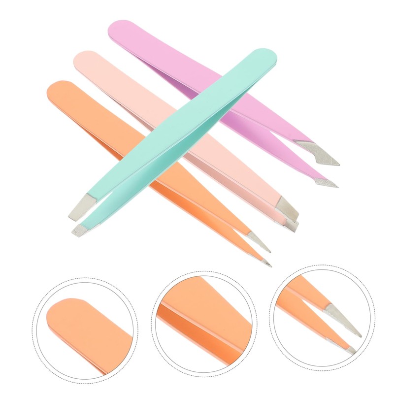 WOONEKY 4pcs Stainless Steel Eyebrow Tweezers Set Pointed Grooming Kit for Beauty Portable Durable Random Color