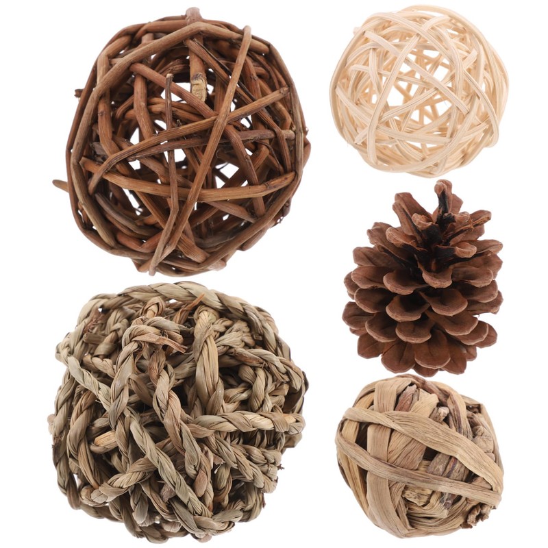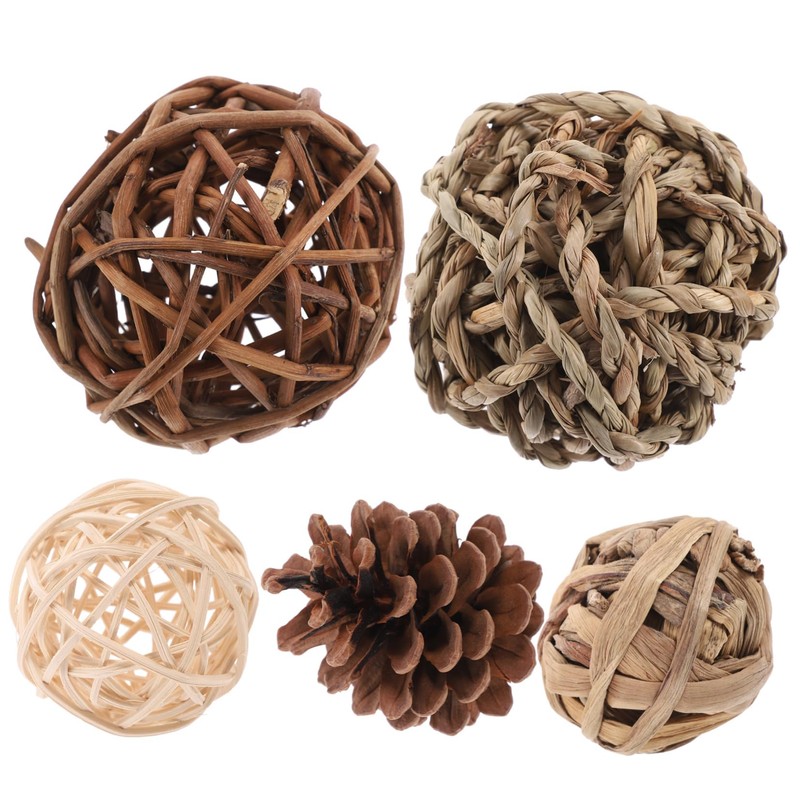 WOONEKY 5pcs Rabbit Guinea Pig Hamster Ball Foraging Toy Chew Toy Molar Balls Pet Care Supplies