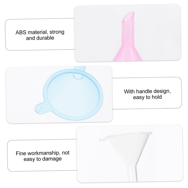 - Mini liquid filling funnels-- precise design: the moderate diameter of the funnels allows for easy pouring of liquids like makeup water and perfume.