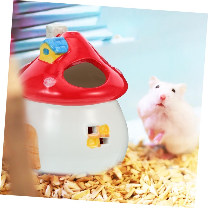 Mushroom Shaped Hamster Nest Adoption of premium ceramic material, this hamster bed is cool and comfortable which can provide your pet a good sleeping environment while offer enough space for their activities.ceramic hamster hideout It can be used on floor, or any other places you like