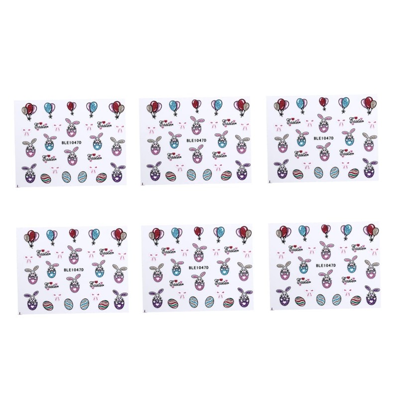 1 x set of 6 Sheets 3D Design Easter Egg Bunny Balloon Glitter Powder Nail Art Stickers DIY Decoration Nail Decals Craft Nail Stencils Tips Set for Easter (BLE1047D)