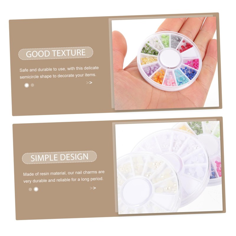 nail art pearls They are safe, reusable and lightweight.simulated nail pearls These products are made from reliable resin material, durable and can last for a long time.pearls for crafts They are accessories for decorating scrapbook, hairpins, mobile phone case, etc