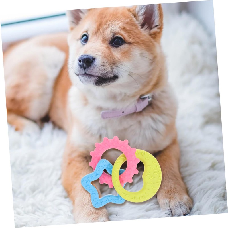 WOONEKY Three-Ring Ring Dogs Teething Dog Saucer Small Chew Puppy Pet Puppy