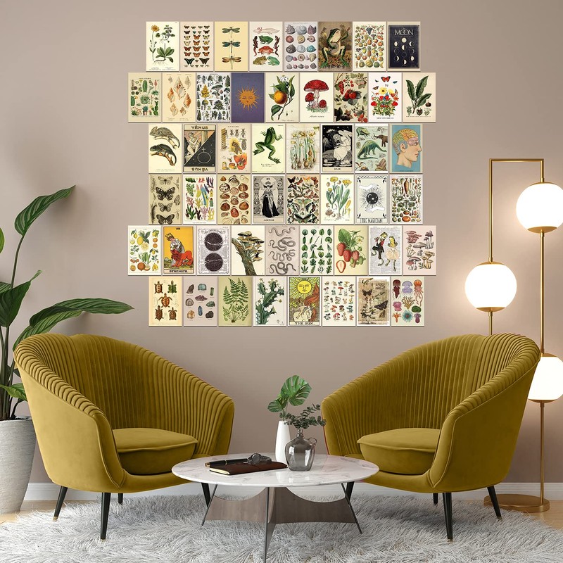 Woonkit Decoración clásico de habitación, decoración de tarot, impresiones estéticas de pósteres clásico, decoración de pared de recámara universitario, decoración de oficina en casa, decoración de cabaña, kit de collage de pared para niños y niñas, 50 p