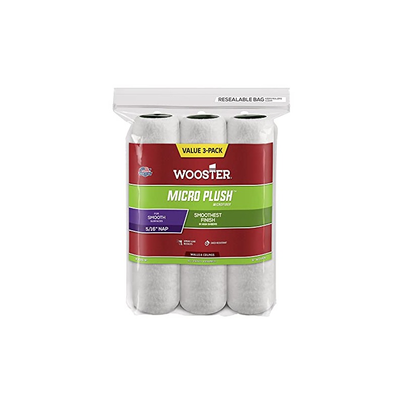 Wooster R335-9 Micro Plush Roller Cover with 5/16" Nap (3 Pack), 9 inches, White