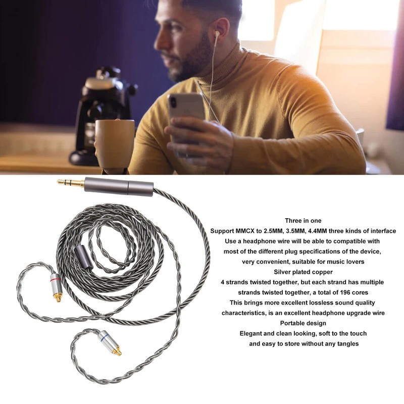 - THREE IN ONE: Replacement earphone cable with three in one special design, support MMCX to 2.5MM, 3.5MM, 4.4MM three kinds of interface, the use of a headphone cable will be able to compatible with most of the different plug specifications of the device.