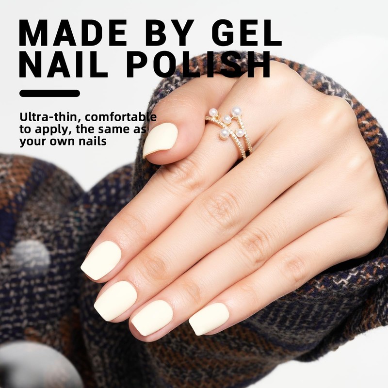 WOOYAS Light Yellow Short Matte Square Fake Nails, 24 Pcs Press Ons Glue Ons