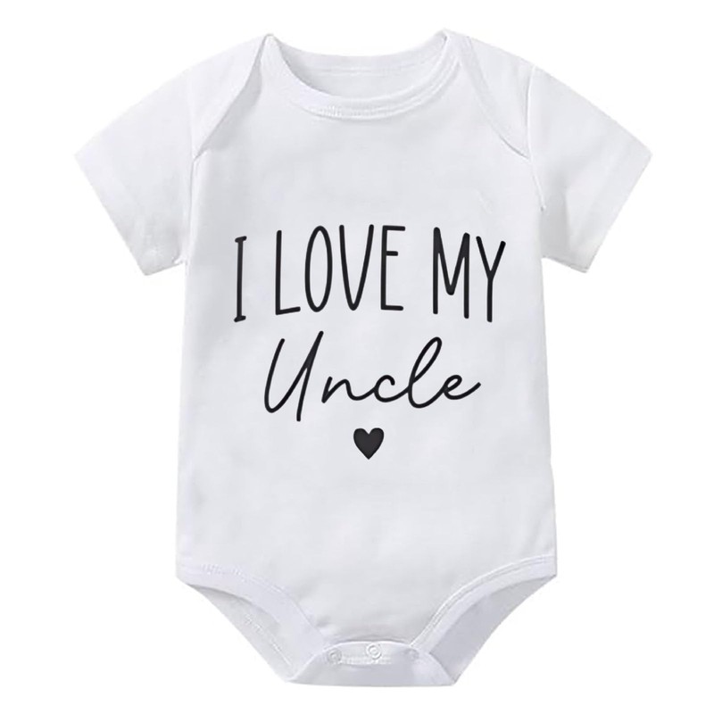 WOOYONGING I Love My Uncle Plain Onsie Short Sleeve Baby Girl White Outfit White Clothes Baby Girl 0-3 Month