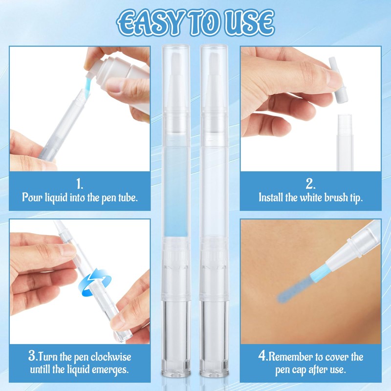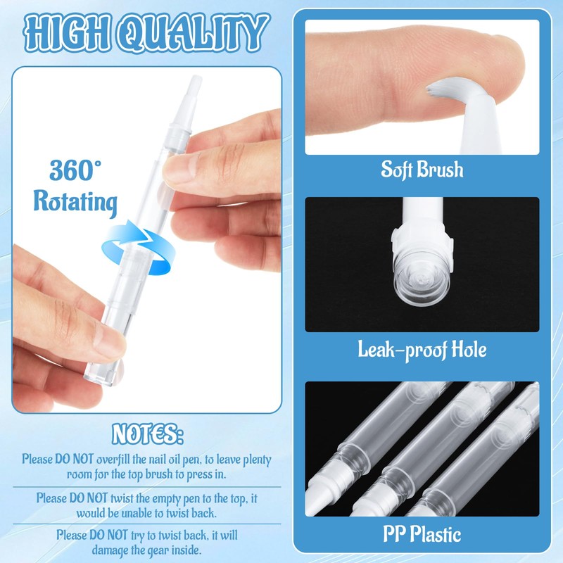 • Portable - The size of the transparent twist pens are 5.3 x 0.5 inches, with a capacity of 3 milliliters. It is of suitable size and light weight, making it convenient for travel and business trips. It comes with a sealed cap to ensure excellent leak-proof performance. The label stickers we provide make it easy to attach labels to each cuticle care oil pen, facilitating classification and identification. You can store one in your wallet or bag at any time for frequent use