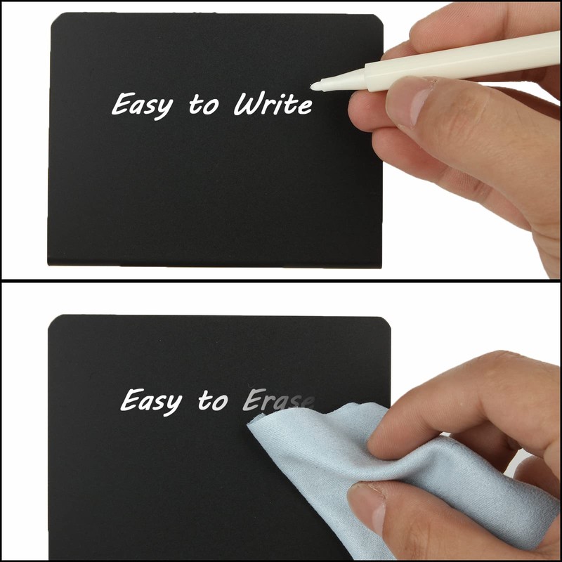 - Easy Erase - All you need to do is wipe it with a damp rag while you do your cleaning and the mini chalk board will look brand new! The handwritten marking sign reflects your personality and intention, and also greatly saves your time and energy.