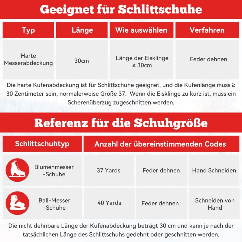 - Breite Anwendung: Geeignet für Eishockey-Schlittschuhe, Hockey-Schlittschuhe und Eiskunstlauf-Schlittschuhe, schützen unsere Kufenschoner die Kufen während des Schlittschuhlaufens.