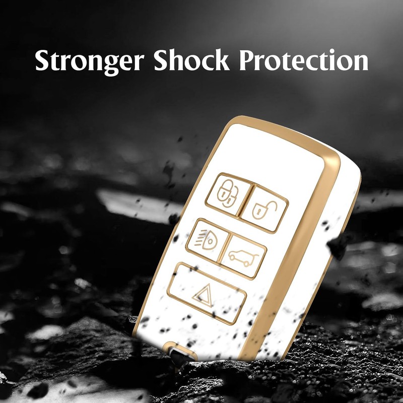 WORCAS for Land Rover 5 Buttonsn Key Fob Cover, TPU Smart Key Fob Case Compatible with Jaguar Land Rover Range Evoque Velar Sport Discovery Freelander(White)