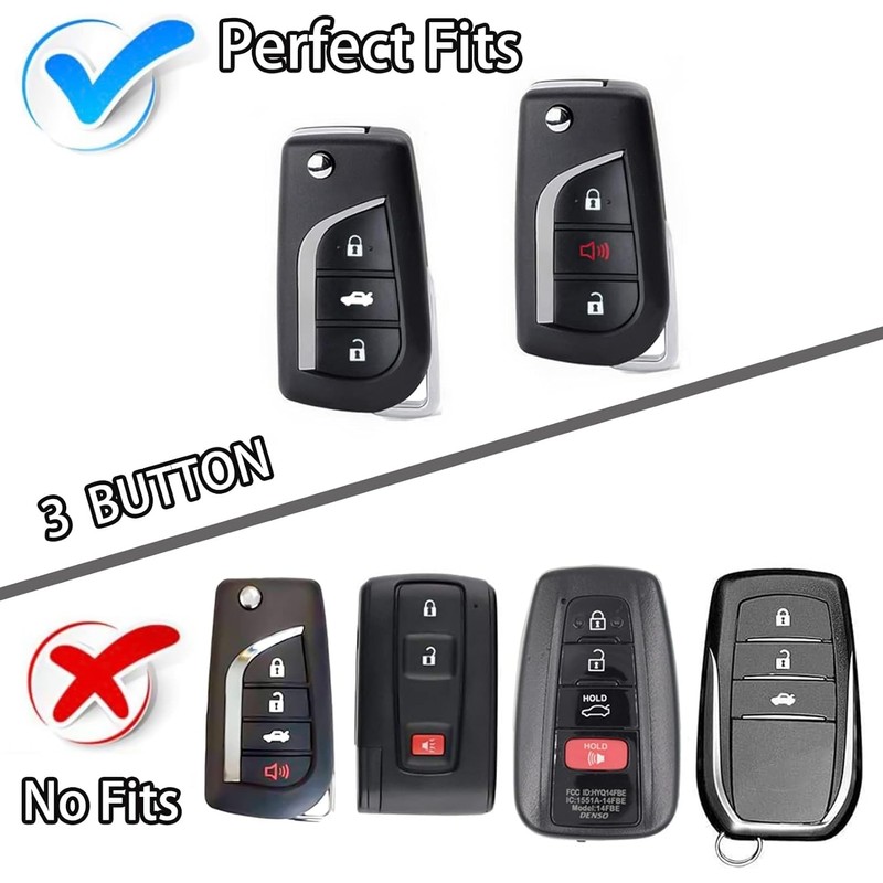 🚗Compatible Models🔑:Compatible with 2018-2020 Camry LE/SE, 2020 Corolla LE/SE,2019-2020 RAV4 LE,2018-2020 C-HR,2017 Fortuner,etc... 3 Button keyless entry remote control ,Smart key like a glove,prevent your car key from breakage and scratches.And also make your car key fob stand out,stay nice and safe,Really wise investment for protecting an expensive electronic key.