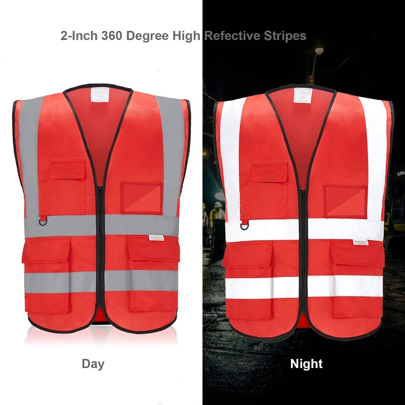- ☄360°HIGH VISIBILITY REFECTIVE STRIPS-Our safety vests come with 360 degree high visibility reflective strips, covering your shoulder, chest, waist and back, reducing the risk of accidents. Whether day or night, it can make you visible even in 1,000 feet away in traffic.
