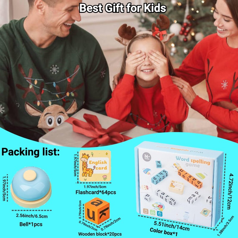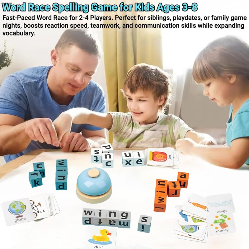 - 【Fast-paced word racing for 2-4 players】 Ignite excitement with competitive gameplay! Kids grab matching color blocks, spell words from 64 flashcards and ring the bell to collect points. Perfect for siblings, playmates or family game nights - increases reaction speed, teamwork and communication skills while expanding vocabulary.