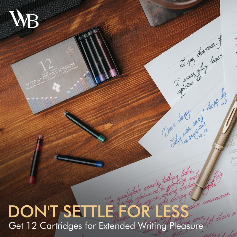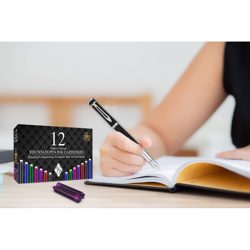- ✅Big Value Green Pack: The 12-pack features 12 ASSORTED international standard size ink cartridges to fit almost all fountain pens on the market.
