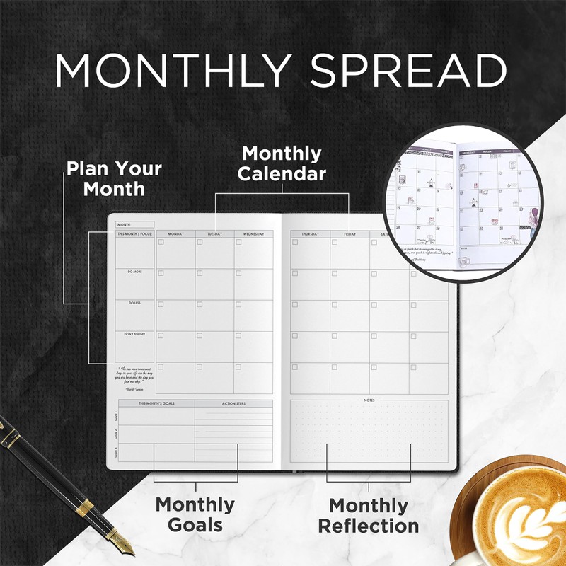 - 📘 DESIGNED FOR YOUR PRODUCTIVITY: Every element of our planner is crafted to boost your productivity. It’s intuitive to use, packed with motivational quotes, and offers spacious writing areas. Also, take advantage of our comprehensive set-up guide on how to maximize the use of your planner and its special review section to reflect on your year. Elevate your organization with Wordsworth & Black.