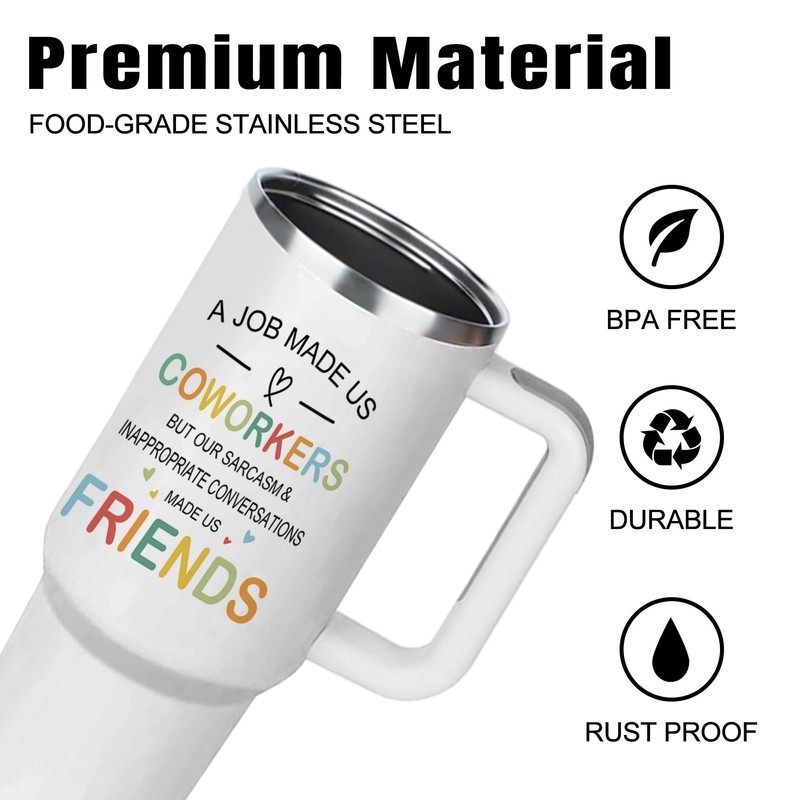 - Make your coworker's day with this 40 oz stainless steel tumbler, a perfect gift for your work bestie. This tumbler with cover and handle is ideal for busy days at the office