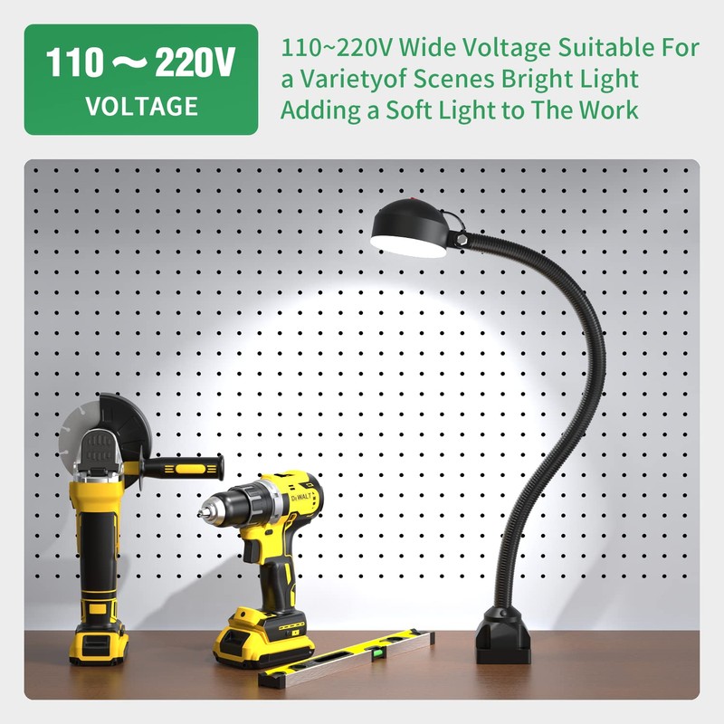 Work Light,12W Led Lamp, IP65 Water Proof Flexible Gooseneck Lamp 1400 Lumens for Lathe Milling, Drill Press, Industrial Lighting