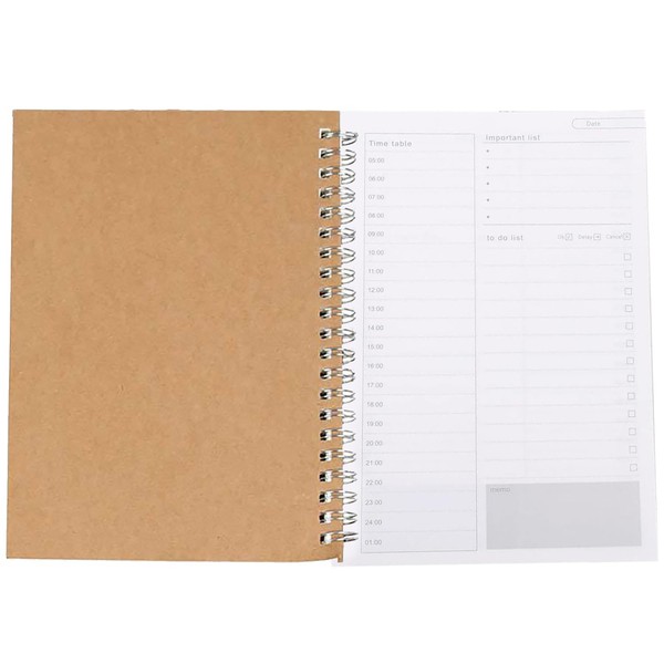 - Product Features: This notebook is designed with spiral bound and can be rotated 360 degrees. Planned from 5:00 to 1:00, this notebook is perfect for your daily schedule. Free writing notebook with plenty of planning space. The cover is made of thick vellum and has a plain and simple style that goes well with any style