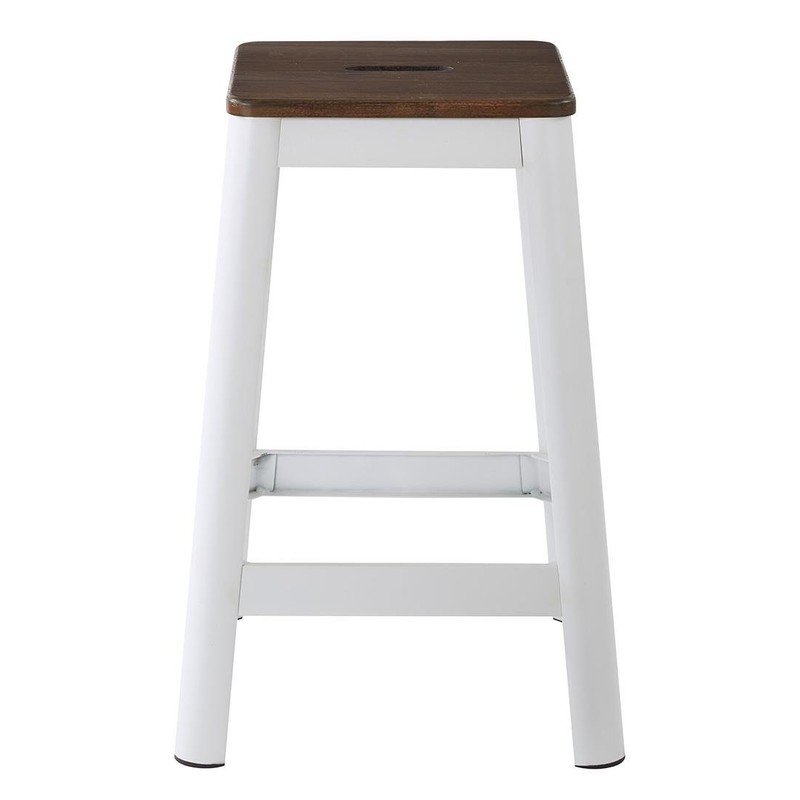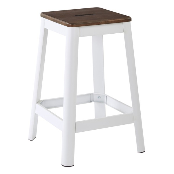Work Smart/OSP Designs Hammond 26" Metal Barstool with Dark Wood Seat and Frame, Frosted White