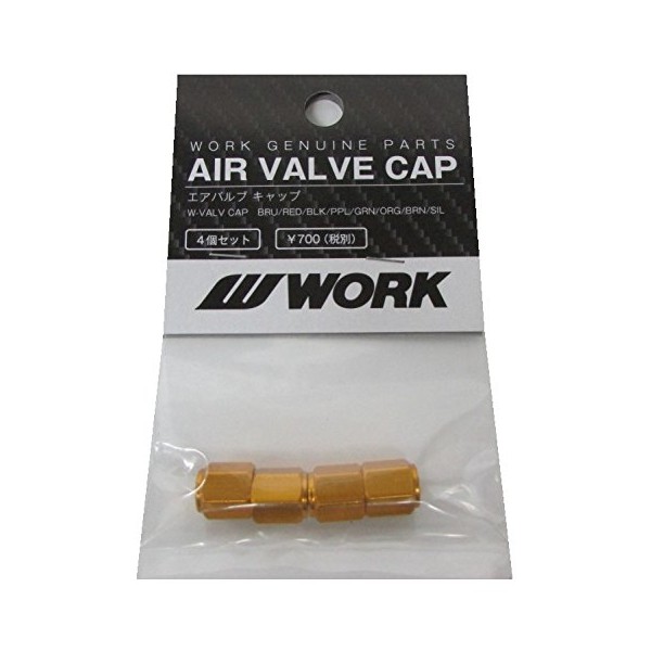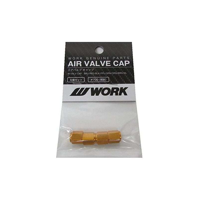 This tire valve cap is made of metal with an orange hexagon. Work Brand, Universal Fit. Fits passenger vehicles and sold in sets of 4. The WORK mark is engraved on the top.