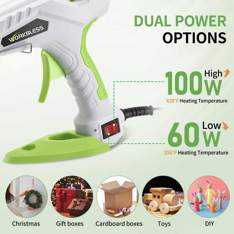 WorkBless Dual Temperature Hot Glue Gun 60W/100W, 2-3 Min Fast Heating, Heavy and Duty Glue Gun with 15PCS Full Size Glue Sticks for Arts, Home Repairs, Professional DIY & Industrial Use