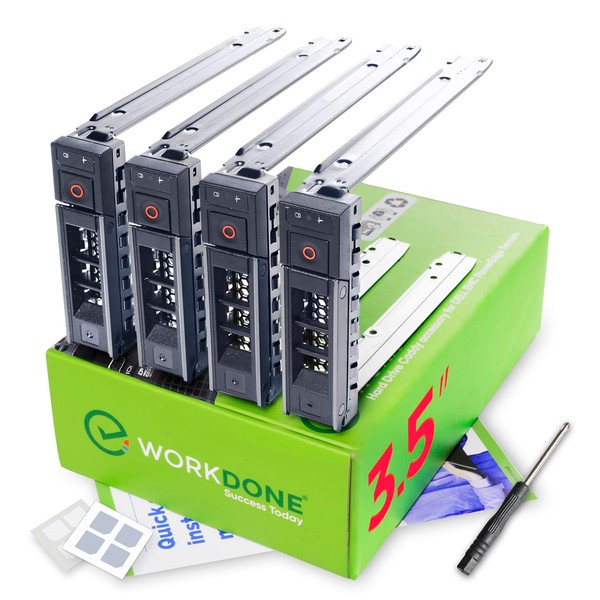 WorkDone 4 Pack - 3.5" Hard Drive Caddy - Compatible with Dell PowerEdge Server - With Detailed Installation Manual - Front Sticker - Screwdriver