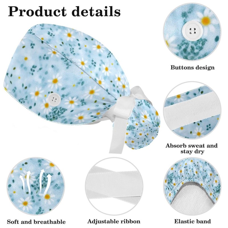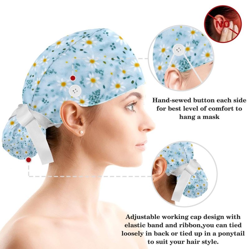 Working Cap Scrub Caps, Daisies Scrub Hats with Sweatband Buttons Adjustable ...