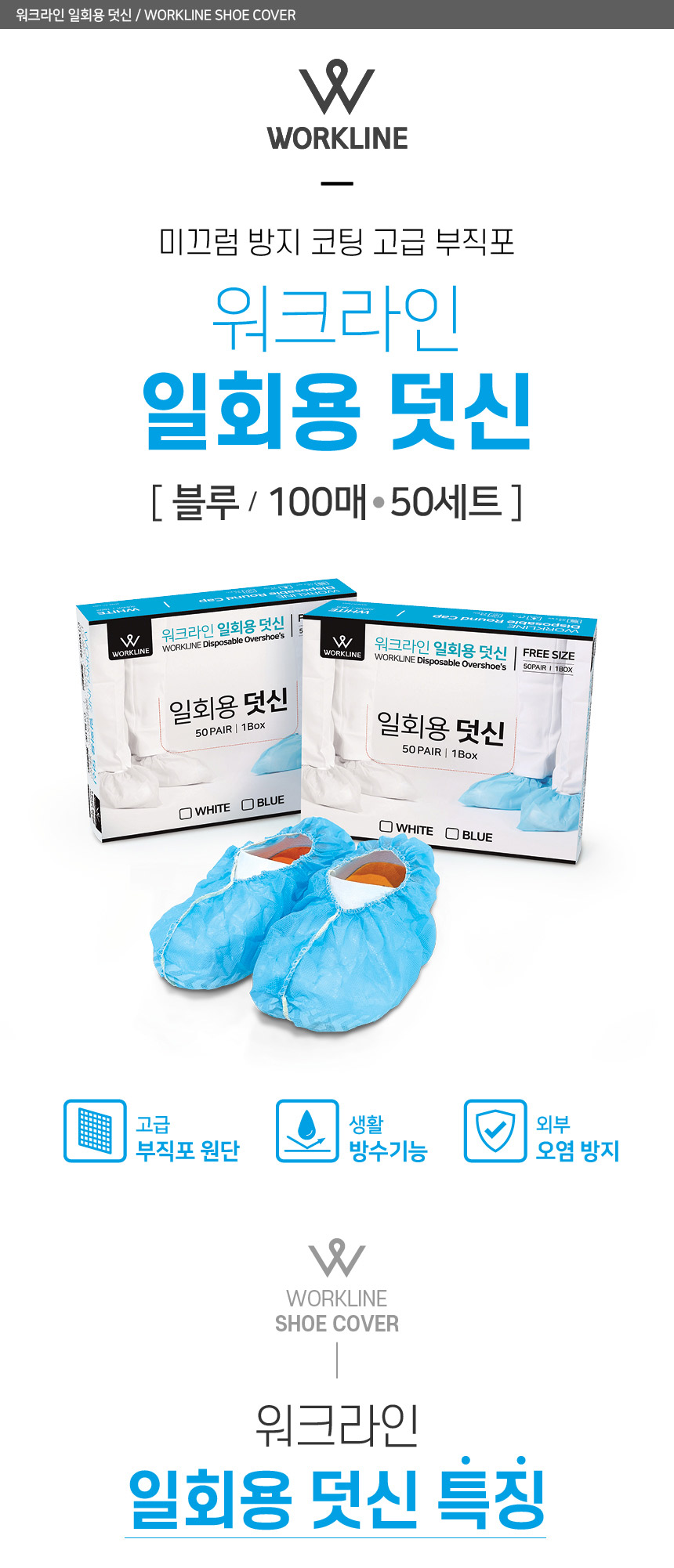 Workline disposable non-woven shoe overshoe covers, foot toe shoe covers, 100 sheets, Workline disposable non-woven overshoes [100 sheets] / 워크라인 일회용 부직포 신발 덧신 커버 발토시 슈즈커버 100매, 워크라인 일회용 부직포 덧신[100매]