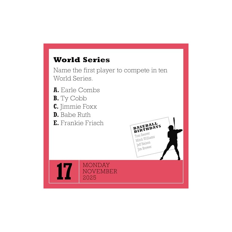 Workman Calendars A Year of Baseball Trivia Page-A-Day? Calendar 2025: Immortal Records, Team History & Hall of Famers